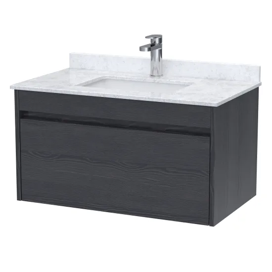 Loftwood 800mm Wall Hung 1 Drawer Unit and Marble Top Basin - Graphite Grey Woodgrain