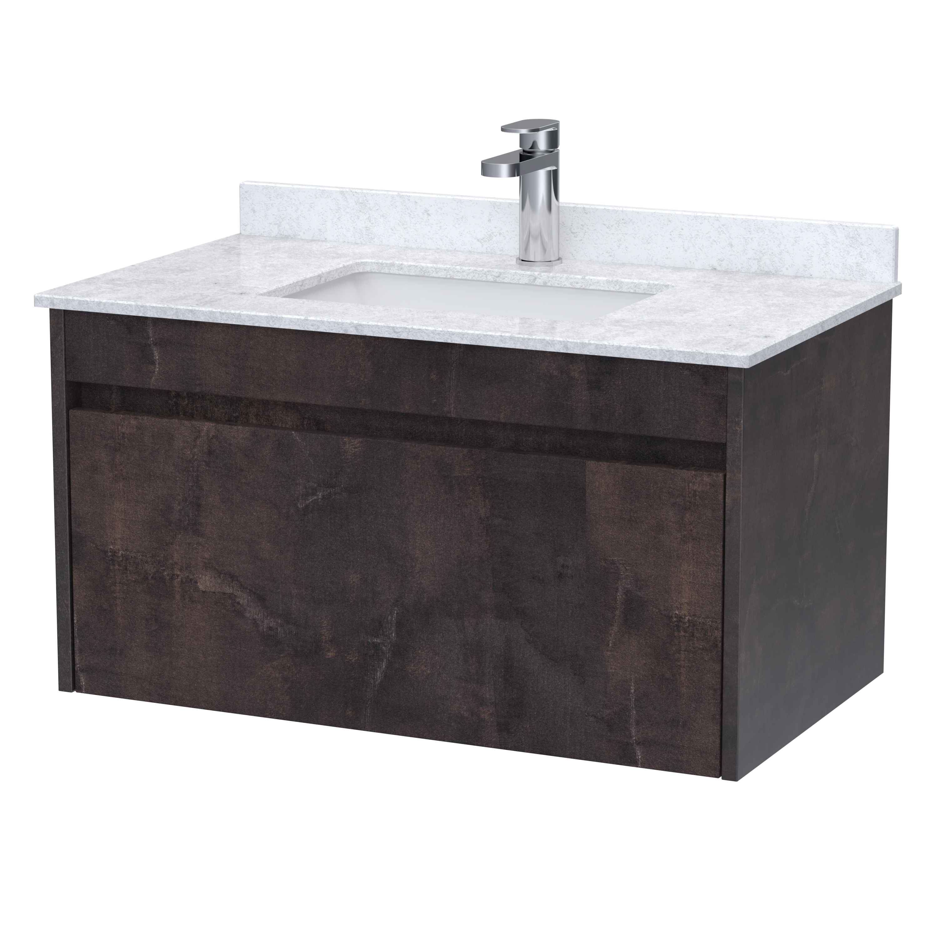 BC Designs Loftwood 800mm Wall Hung 1 Drawer Unit and Marble Top Basin - Metallic Slate