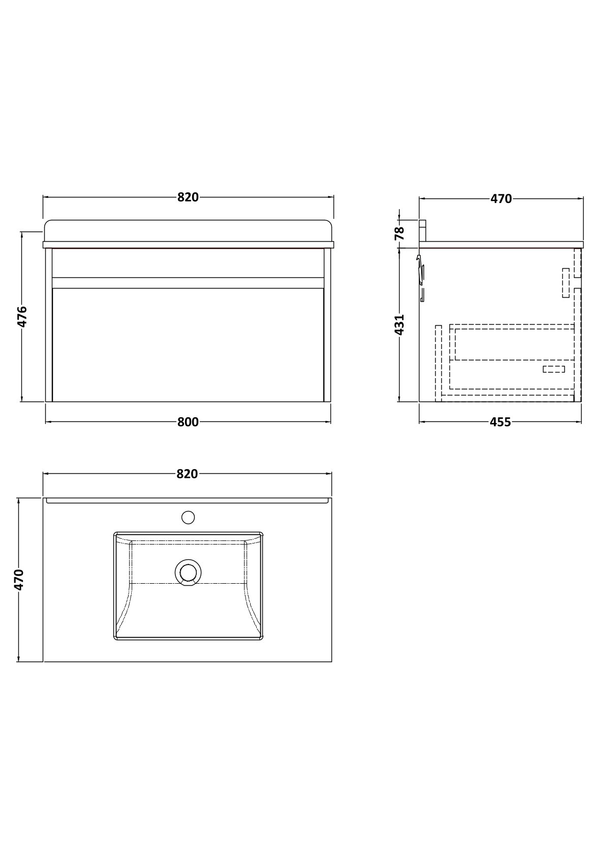 BC Designs Loftwood 800mm Wall Hung 1 Drawer Vanity Unit with Marble Basin
