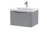 Nuie Lunar 600mm Satin Grey Wall Hung 1 Drawer Unit With Ceramic Basin