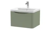 Nuie Lunar 600mm Satin Green Wall Hung 1 Drawer Vanity Unit With Ceramic Basin
