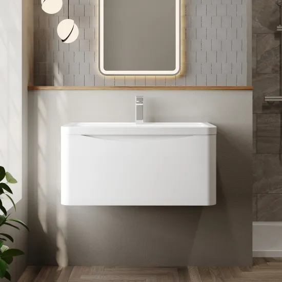 Nuie Lunar 800mm Satin White Wall Hung 1 Drawer Vanity Unit & Basin