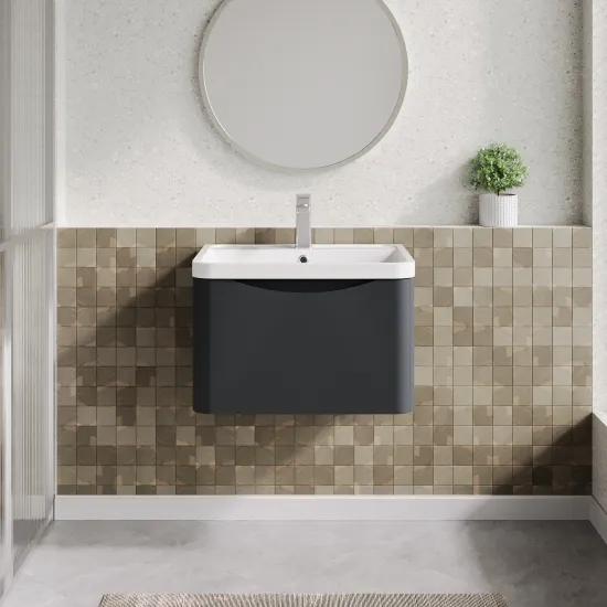 Nuie Lunar 600mm Satin Grey Wall Hung Vanity Unit with Polymarble Basin