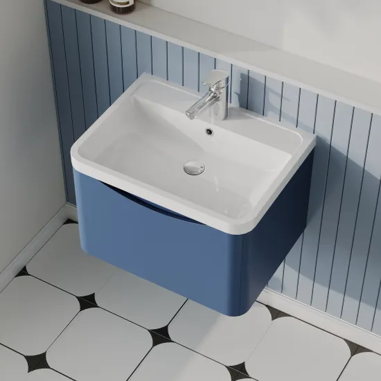 nuie Lunar Wall Hung 1 Drawer Unit & Polymarble Basin, 600mm - Satin Blue