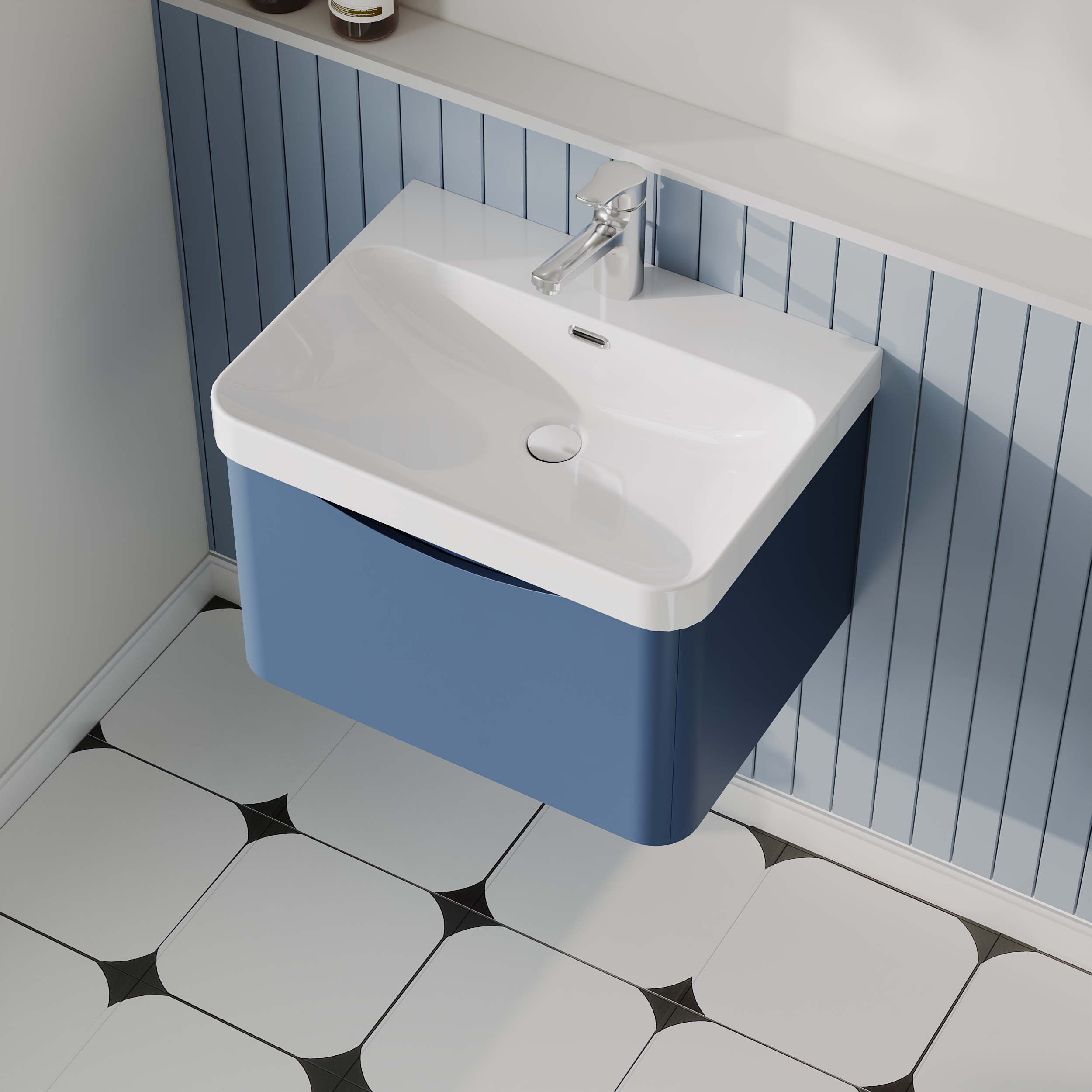 nuie Lunar Wall Hung 1 Drawer Unit & Thin Edge Ceramic Basin, 600mm - Satin Blue