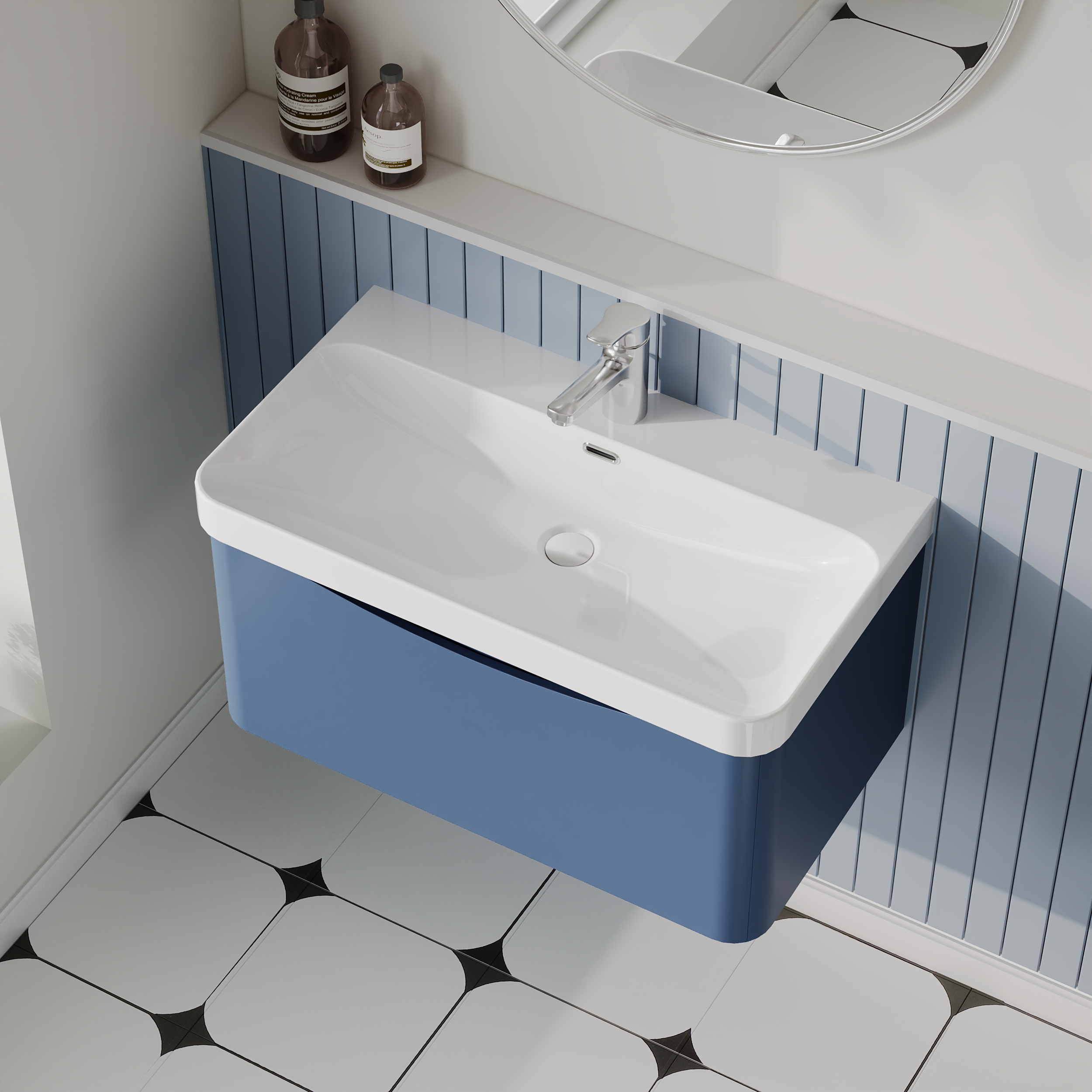 nuie Lunar Wall Hung 1 Drawer Unit & Thin Edge Ceramic Basin, 800mm - Satin Blue