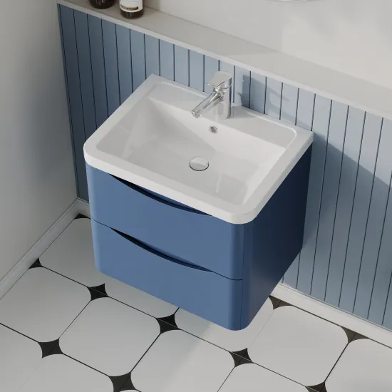 nuie Lunar Wall Hung 2 Drawer Unit & Ceramic Basin, 600mm - Satin Blue