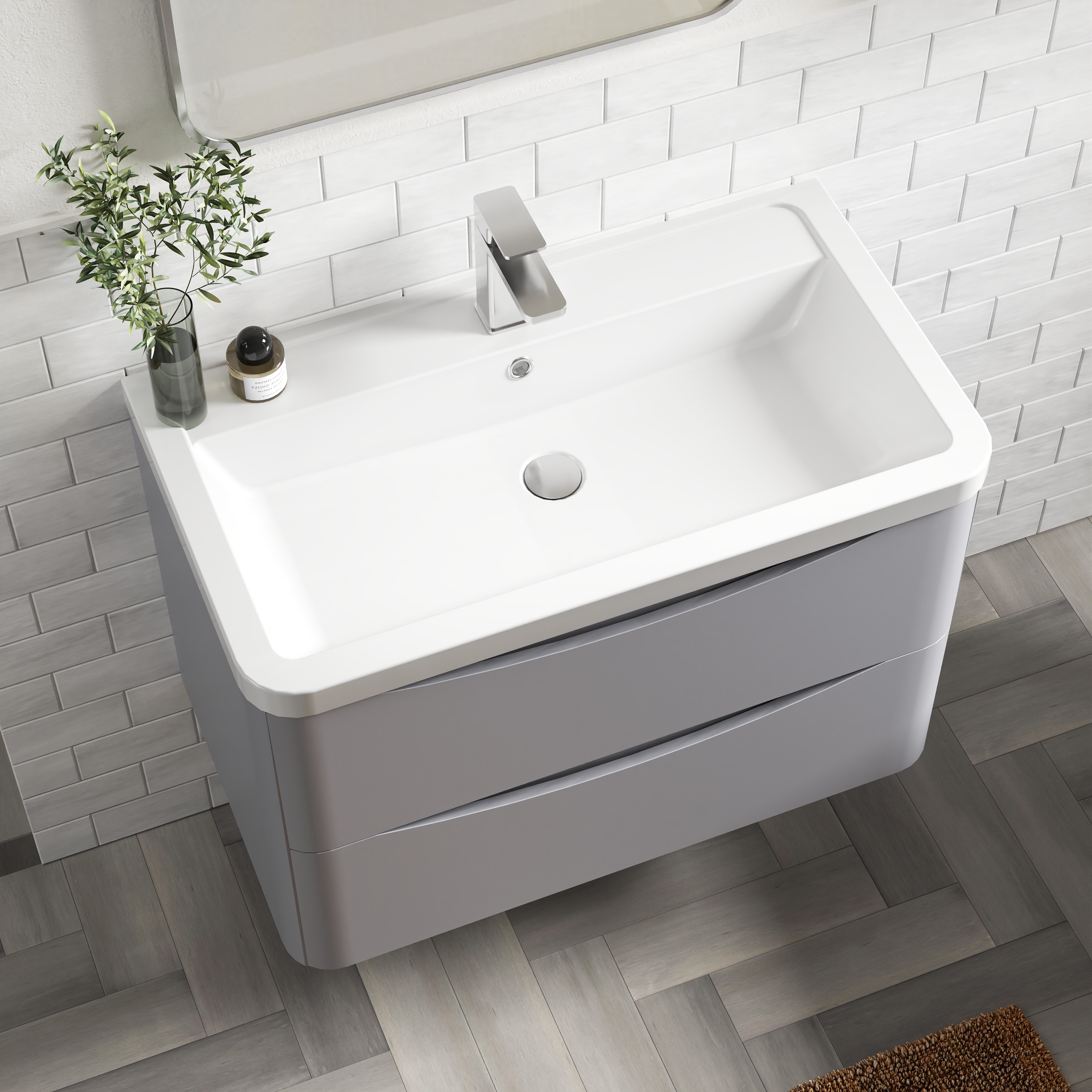 nuie Lunar Wall Hung 2 Drawer Unit & Ceramic Basin, 800mm - Satin Grey