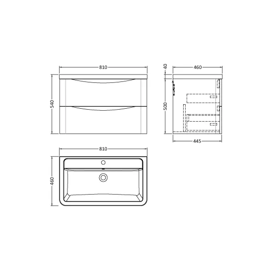 Nuie Lunar 800mm Wall Hung 2 Drawer Unit with 1 Tap Hole Basin