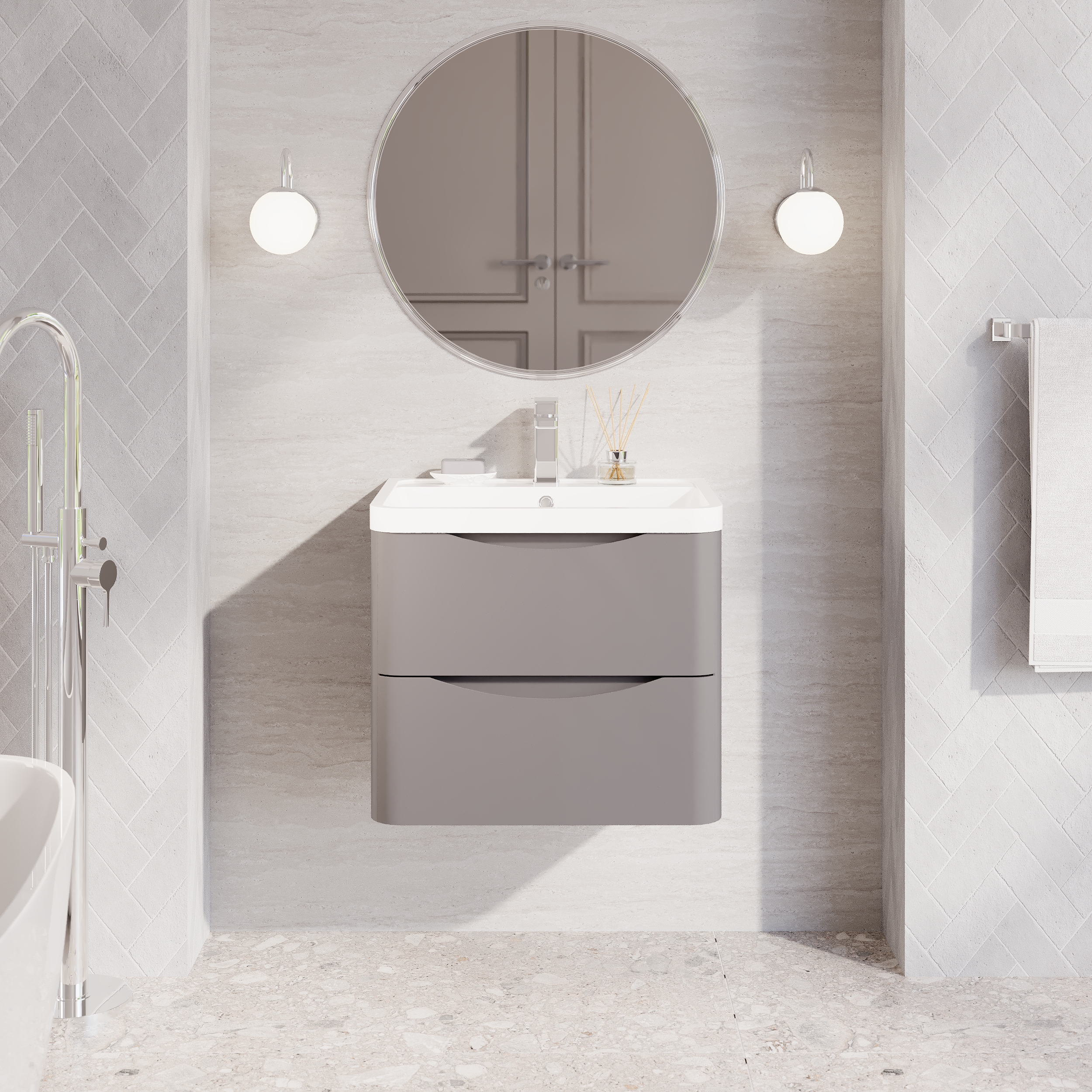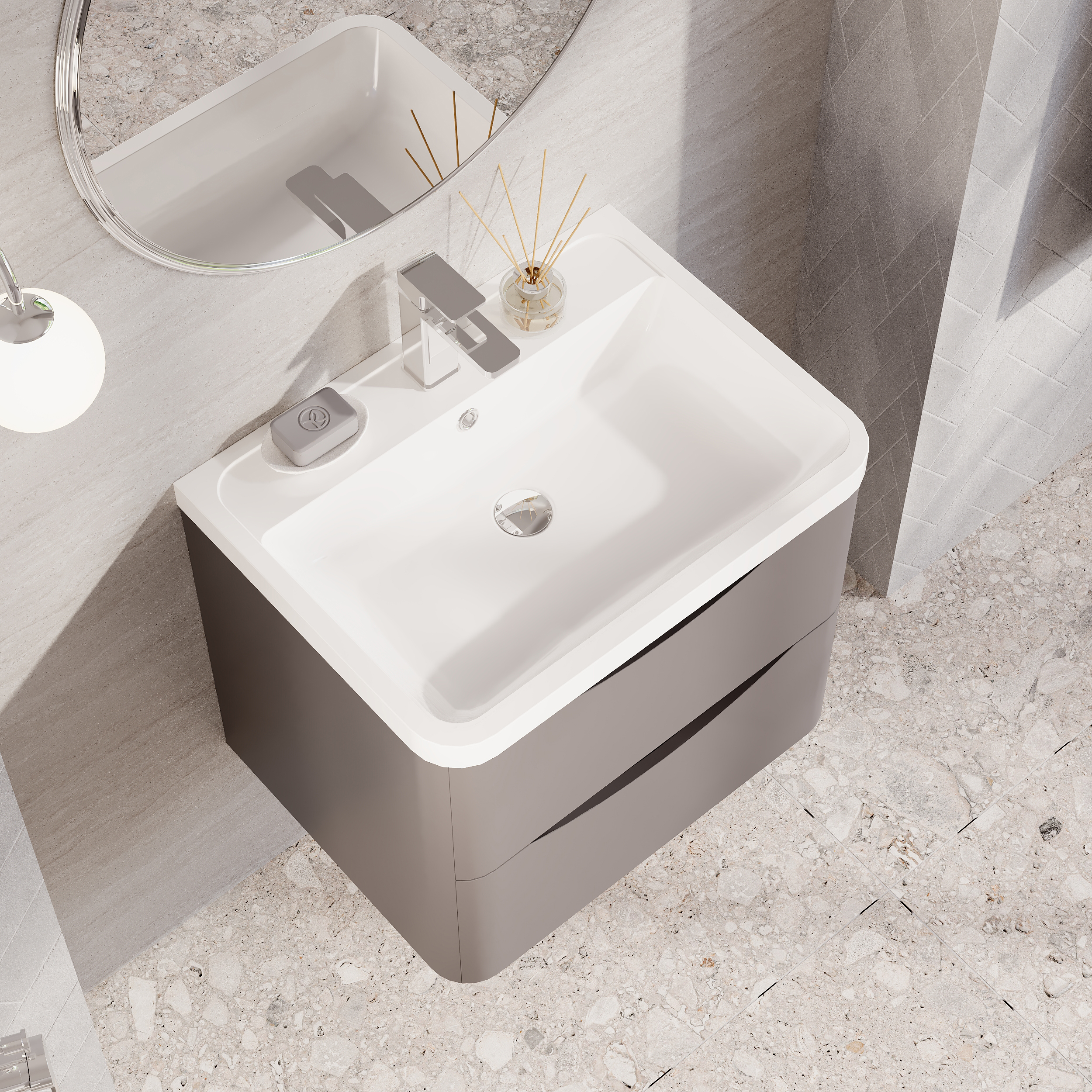 nuie Lunar Wall Hung 2 Drawer Unit & Polymarble Basin, 600mm - Satin Grey