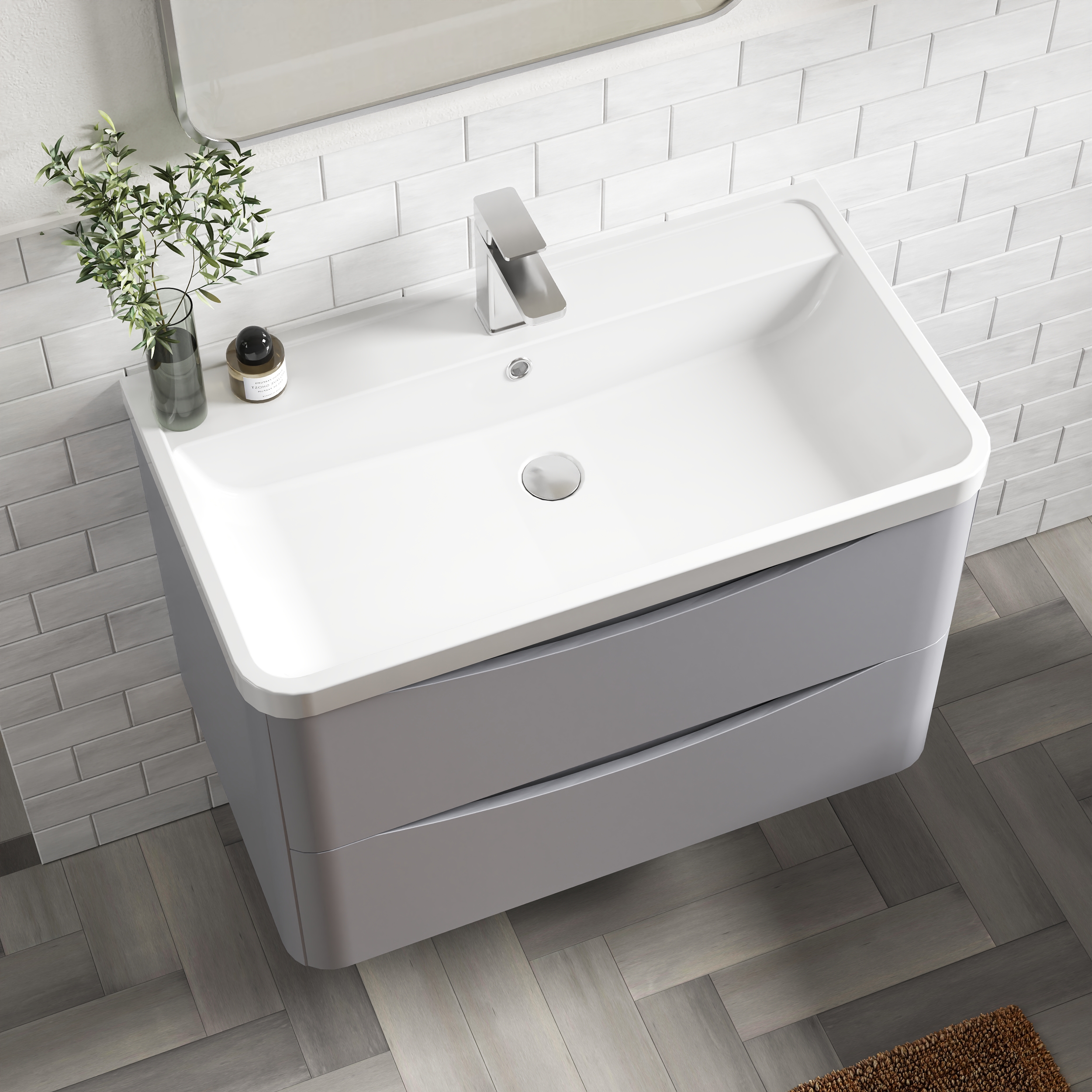 nuie Lunar Wall Hung 2 Drawer Unit & Polymarble Basin, 800mm - Satin Grey