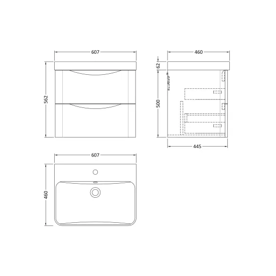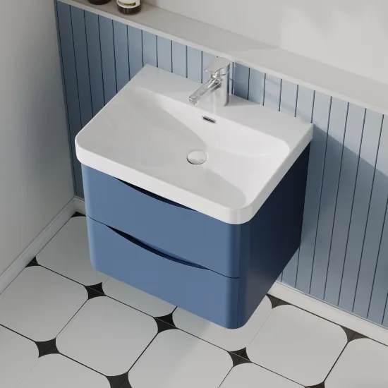 nuie Lunar Wall Hung 2 Drawer Unit & Thin Edge Ceramic Basin, 600mm - Satin Blue