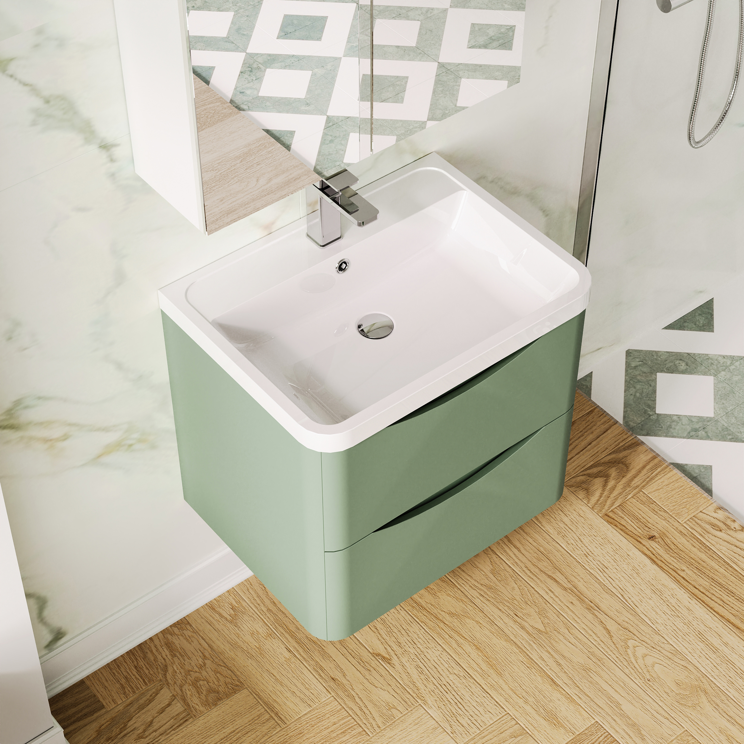 Nuie Lunar 600mm Satin Green Wall Hung 2 Drawer Unit & Basin