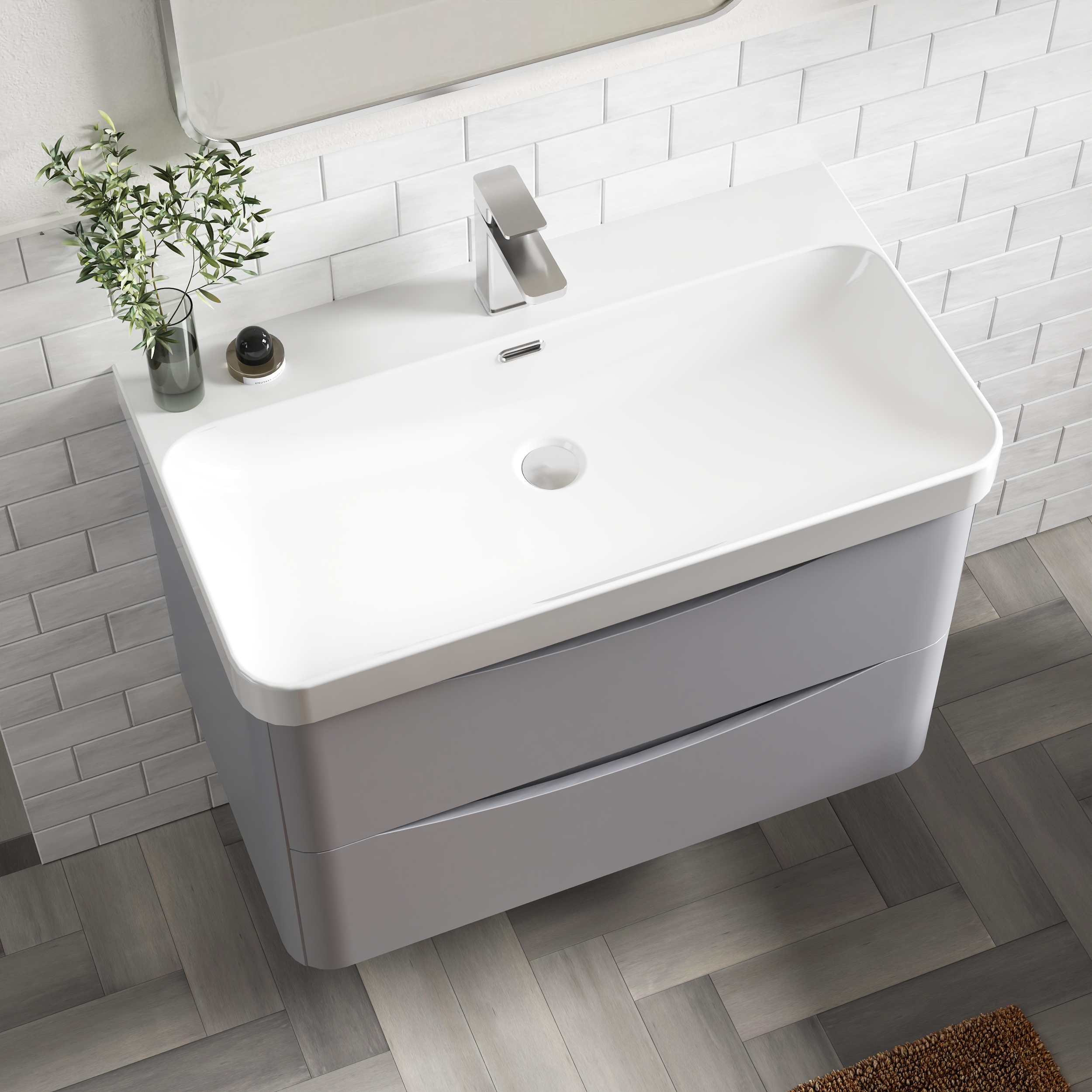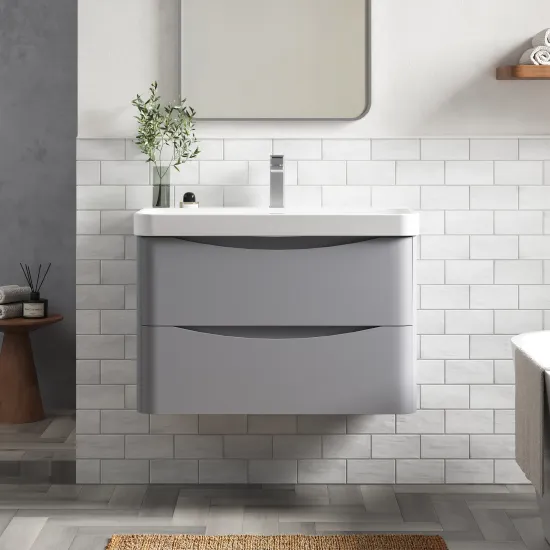 Nuie Lunar 800mm Satin Grey Wall Hung 2 Drawer Unit With Thin Edge Ceramic Basin