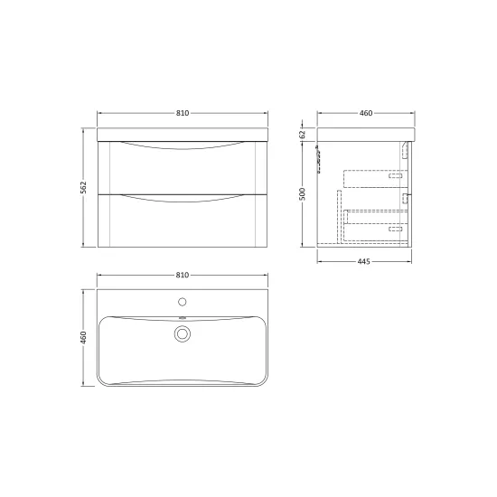 nuie Lunar Wall Hung 2 Drawer Unit & Thin Edge Ceramic Basin, 800mm - Satin Green