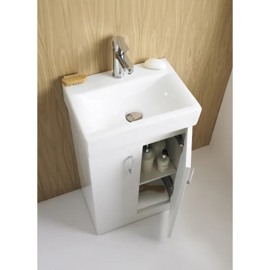 nuie Mayford Wall Hung 2 Door Vanity Unit with Ceramic Basin 450mm - Gloss White