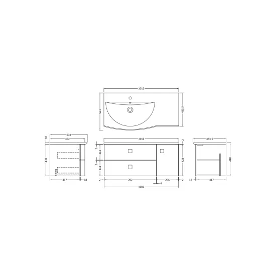 Nuie Lux Hartwell 1000mm Dove Grey Left Hand 2 Drawer 1 Door Wall Hung Vanity Unit with Basin