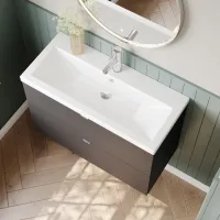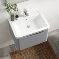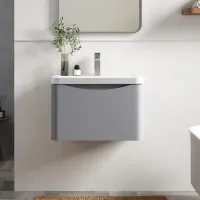 Nuie Havana 600mm Coastal Grey Wall Hung 2 Drawer Vanity Unit with Curved Ceramic Basin