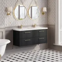 Nuie Havana 1200mm Wall Hung 4 Drawer Vanity Unit Including Double Ceramic Basin
