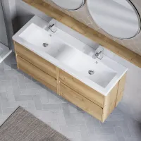 Nuie Havana 1200mm Autumn Oak Wall Hung 4 Drawer Vanity Unit with Double Basin