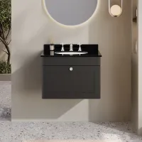 Nuie Classique 600mm Soft Black Wall Hung 1 Drawer Vanity Unit with 3 Tap Hole Basin