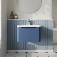 Nuie 800mm Satin Blue Wall Hung 2-Drawer Vanity Unit with Basin With Chrome Handles