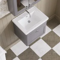 Hudson Reed Juno 600mm Coastal Grey Wall Hung 2-Door Vanity Unit with 1 Tap Hole Basin