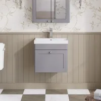Hudson Reed Juno 600mm Coastal Grey Wall Hung 2-Door Vanity Unit with 1 Tap Hole Basin