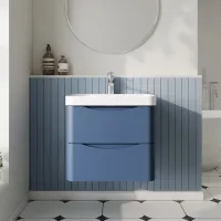 Hudson Reed Fluted 800mm Satin Blue Wall Hung Single Drawer Vanity Unit with Mid-Edge Basin