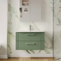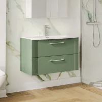 Nuie 800mm Satin Green Part Fluted Wall Hung 2-Drawer Vanity Unit with Basin & Chrome Handles