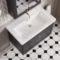 Larck 800mm Single Drawer Wall Hung Unit with Traditional Fireclay Basin - 1 Tap Hole