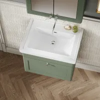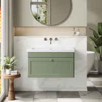 Nuie Classique 800mm Satin Green Wall Hung Single Drawer Soft Close Vanity Unit With Basin