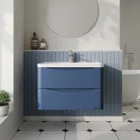 Nuie Lunar 800mm Satin Blue Wall Hung 2 Drawer Vanity Unit & Polymarble Basin