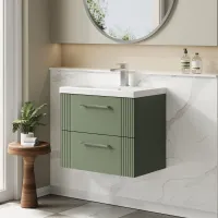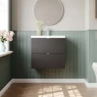 Flume 600mm 2- Drawer Wall Hung Unit with Contemporary Fireclay Basin - 1 Tap Hole