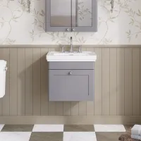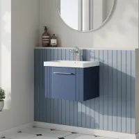 Bayswater Hartleigh 500mm Stiffkey Blue 1 Drawer Wall Hung Vanity Unit With 3 Tap Hole Basin