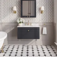 Flume 800mm 2- Drawer Wall Hung Unit with Traditional Fireclay Basin - 1 Tap Hole