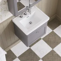 Flume 600mm 2- Drawer Wall Hung Unit with Traditional Fireclay Basin - 1 Tap Hole