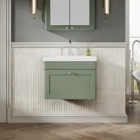 Larck 600mm Single Drawer Wall Hung Unit with Traditional Fireclay Basin - 3 Tap Holes