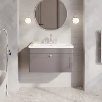 Larck 800mm Single Drawer Wall Hung Unit with Traditional Fireclay Basin - 1 Tap Hole