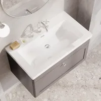 Larck 800mm Single Drawer Wall Hung Unit with Contemporary Fireclay Basin - 3 Tap Holes