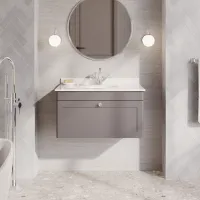 Flume 800mm Single Drawer Wall Hung Unit with Contemporary Fireclay Basin - 1 Tap Hole