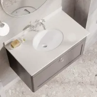 Flume 600mm Single Drawer Wall Hung Unit with Grey Marble Top