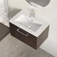 Larck 600mm Single Drawer Wall Hung Unit with Contemporary Fireclay Basin - 3 Tap Holes