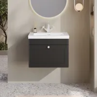 Flume 600mm Single Drawer Wall Hung Unit with Contemporary Fireclay Basin - 0 Tap Holes