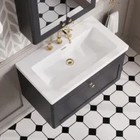 Larck 800mm Single Drawer Wall Hung Unit with Traditional Fireclay Basin - 1 Tap Hole