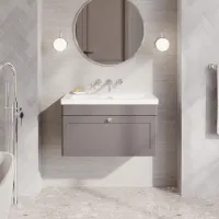 Flume 800mm Single Drawer Wall Hung Unit with Grey Marble Top