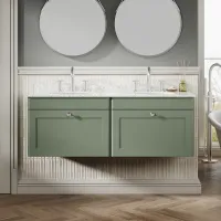 Kivo 800mm 2- Drawer Wall Hung Unit with a Traditional Fireclay Basin - 0 Tap Holes