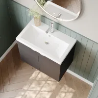 Larck 800mm 2- Drawer Wall Hung Unit with Contemporary Fireclay Basin - 1 Tap Hole