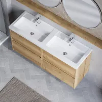 Larck 600mm 2- Drawer Wall Hung Unit with Double Bowl Marble Top 1 Tap Hole in White