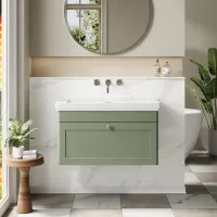 Larck 800mm Single Drawer Wall Hung Unit with Traditional Fireclay Basin - 0 Tap Holes